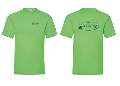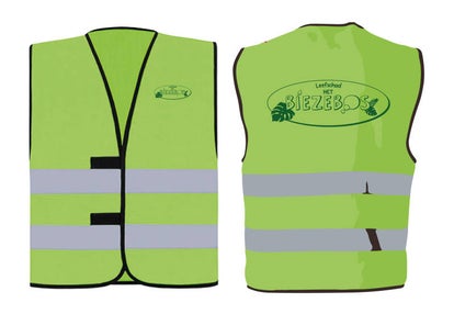 Groene t-shirt met donkergroen logo en fluohesje met donkergroen logo